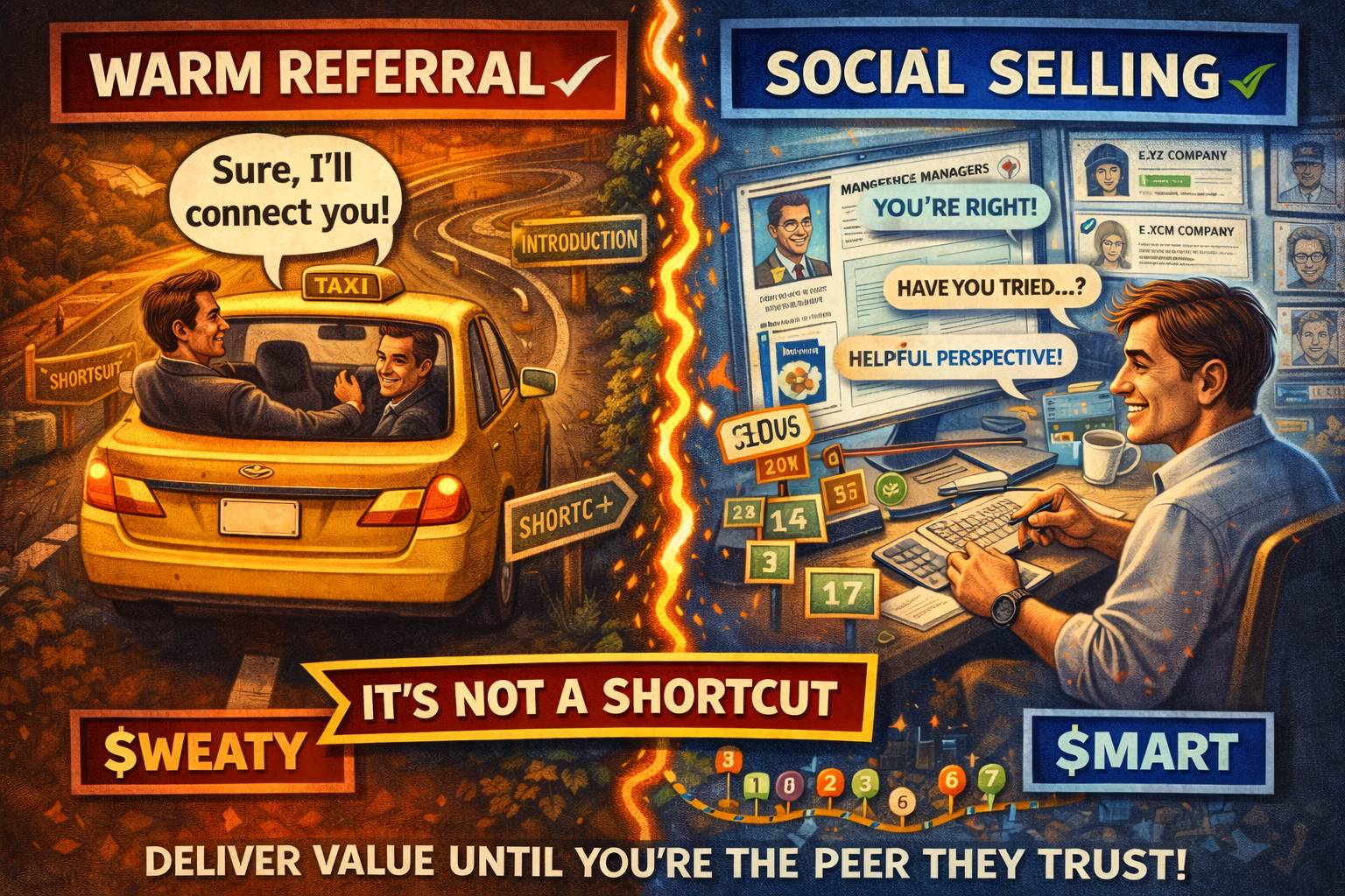Hey Reader, A founder I spoke with last week thought he had social selling dialed in. "I can ask a friend who knows an e-commerce manager to make an introduction," he said. I had to stop him right there. That's a warm referral. A perfectly valid tactic – but not social selling. Calling it social selling is like calling a taxi a road trip. Same road, completely different commitment. Here's what social selling actually looks like: Step 1: Find your exact ICPs on LinkedIn. Not broadly....